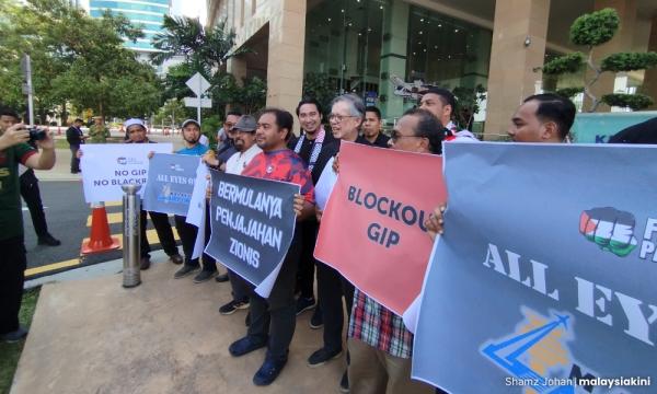 Sekumpulan aktivis anti-Israel termasuk ahli politik berdemonstrasi bagi membantah tawaran penjualan saham Malaysia Airport Berhad (MAHB) kepada konsortium yang dianggotai Global Infrastructure Partners (GIP).